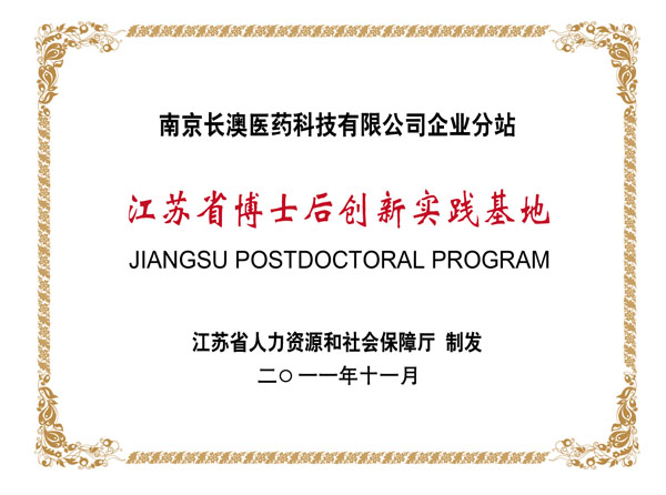2011年 江苏省博士后创新实践基地(长澳分站)
